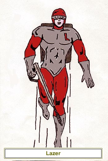 His origin pretty much was generic enough that it could work in my game world easy enough. I didn't do much with it. I did, however, use him again as a leader figure in a group called the Enforcers. The other members were creations of someone from one of the APAs I belonged to at the time. That sort of allowed Lazer to move up to a threat for a whole team. So, check out how he appears in the World of Maenza and let me know what you think.